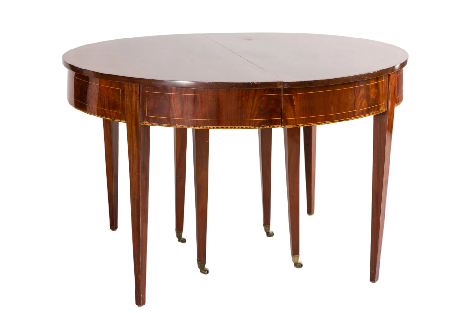 Le plateau est magistralement ouvré en acajou massif, soutenu par une ceinture plaquée d’un magnifique acajou pyramide.