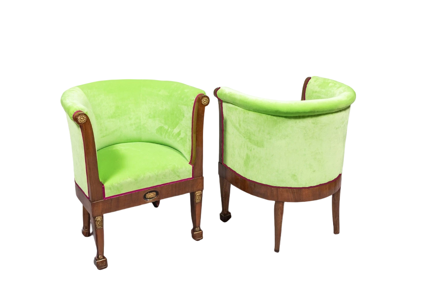 The upholstery and fabric covering have been thoughtfully renewed to preserve their contemporary elegance.
