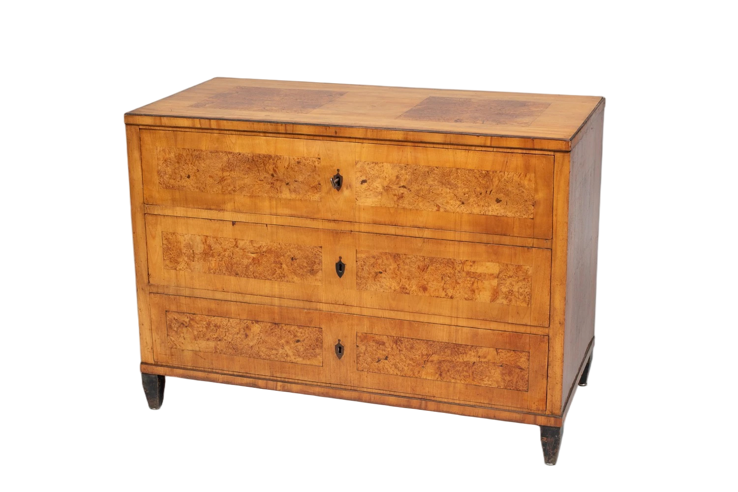 Exquisitely veneered in cherrywood and alder burr wood (panel fields) on a fine softwood body.