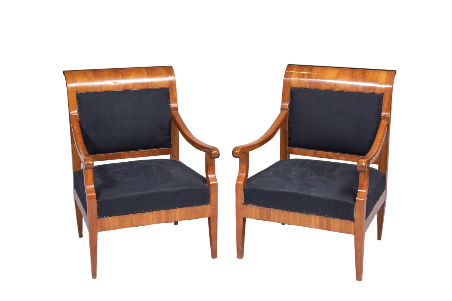 The legs and backrest supports are masterfully crafted from solid cherrywood.